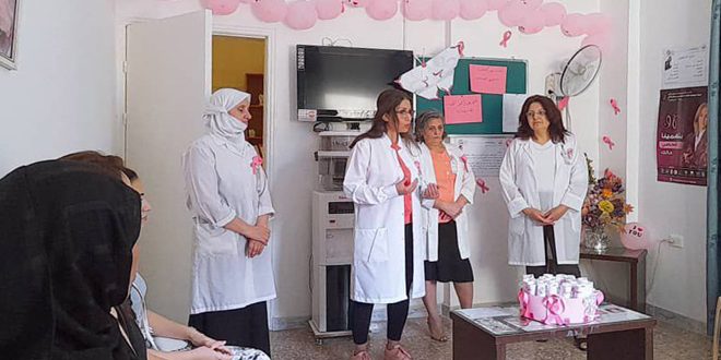 ضمن إطار الحملة الوطنية للتوعية بأهمية الكشف المبكر عن سرطان الثدي المتزامنة مع فعاليات الشهر العالمي للتوعية بهذا المرض “الشهر الوردي”، كثفت المشافي والمؤسسات الصحية والجمعيات الأهلية في السويداء ودرعا أنشطتها التثقيفية والتشخيصية الهادفة لزيادة معدلات الشفاء وفرص العلاج.