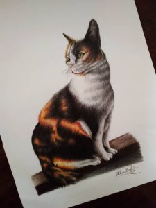 وعن مواضيع الرسومات التي ينجزها قال: “شدتني ملامح الوجوه بداية فكانت الرسمة الأولى في السنه الثانية بالجامعة لوجه أحد أقربائي، ثم بدأت أرسم وجوه الحيوانات وغيرها بشكل ثلاثي الأبعاد رغم حاجز التوتر الذي كان يصيبني عند رسم الوجوه لجهة التزام مقاييس الرسم”.