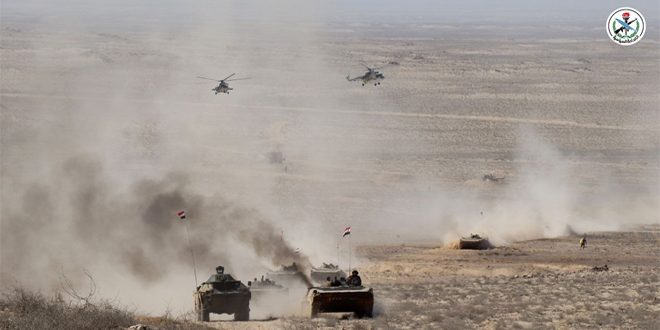 بتوجيه من السيد الرئيس الفريق بشار الأسد القائد العام للجيش والقوات المسلحة، واستناداً لخطط التدريب القتالي لقواتنا المسلحة لهذا العام، نفذ أحد تشكيلاتنا المقاتلة مشروعاً تكتيكياً عملياتياً بالذخيرة الحية على مدى عدة أيام، شاركت فيه مختلف صنوف القوات البرية والجوية، في ظروف تحاكي في طبيعتها المعركة الحقيقية، حيث قدم مدير المشروع شرحاً مفصلاً عن فكرة المعركة، ومراحل تنفيذها المتضمنة الهجوم من الحركة على مواقع العدو وتحصيناته.