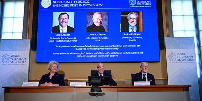 أعلنت الهيئة المانحة لجوائز نوبل، عن فوز كل من العلماء آلان اسبيه وجون كلوزر وأنتون تسايلينغر بجائزة نوبل في الفيزياء للعام الجاري، تقديراً لأبحاثهم في ميكانيكا الكم، ودراسة سلوك الجسيمات دون الذرية.