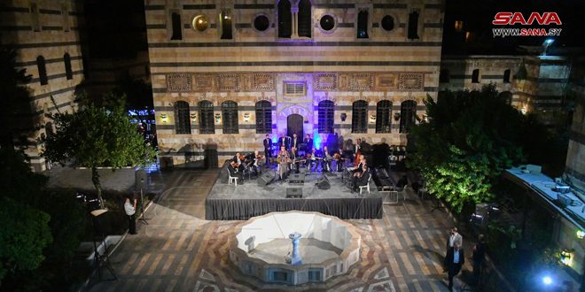 بين الجامع الأموي وشارع مدحت باشا صدحت فرقة نغم للموسيقى العربية على خشبة قصر العظم بأعذب الألحان، ليشدو معها المطرب دياب سكري بأجمل الموشحات السورية التي حملت عبق الأصالة وروح التراث.