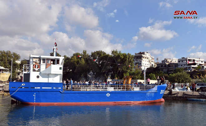بمناسبة الذكرى التاسعة والأربعين لحرب تشرين التحريرية، تم في ميناء مدينة بانياس بمحافظة طرطوس اليوم تعويم سفينة فرح ستار (2)، لتكون ثاني سفينة سورية مصنعة بخبرات وطنية.