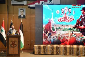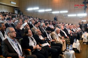 وأشار أمين عام جبهة النضال الشعبي الفلسطيني خالد عبد المجيد إلى حالة النهوض الشعبي، والمواجهات البطولية ضد الاحتلال في الأراضي المحتلة معتبراً أن حالة النهوض استمدت قوتها من صمود، وانتصار سورية، ومحور المقاومة لافتاً إلى ما قدمته حركة الجهاد من تضحيات من أجل القضية الفلسطينية، ما جعلها نموذجاً حياً ومميزاً في المقاومة، ومواجهة الاحتلال الصهيوني.