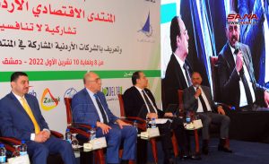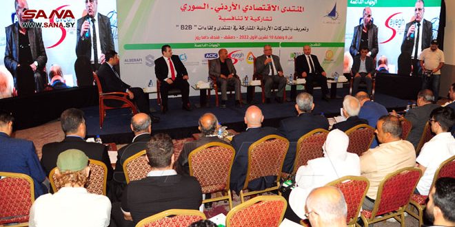 وكانت أعمال المنتدى الاقتصادي الأردني السوري انطلقت أمس، وتستمر حتى يوم الغد، وتتضمن إضافة إلى الجلسات الحوارية الاقتصادية والتجارية لقاءات ثنائية تخصصية بين الشركات الأردنية ورجال الأعمال السوريين، لبحث آفاق التعاون في مجالات الطاقات المتجددة وتكنولوجيا المعلومات والاتصالات والرعاية الصحية والسياحة العلاجية.