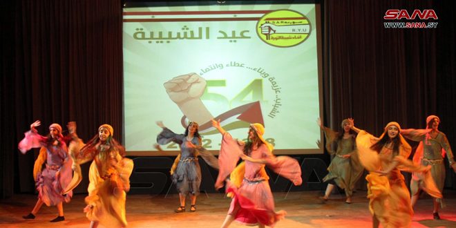 نظم فرع منظمة اتحاد شبيبة الثورة في طرطوس حفلاً فنياً منوعاً، احتفالاً بالذكرى الـ 54 للمنظمة، تخلله فقرات فنية غنائية وشعرية ورياضية وتكريم الشبيبيين الحاصلين على المراكز الأولى في المسابقات الشبيبة البالغ عددهم 40 شبيبياً، إضافة إلى 10 من أمناء الوحدات الشبيبة القدامى والمتميزين، وذلك في المركز الثقافي العربي بمدينة طرطوس.