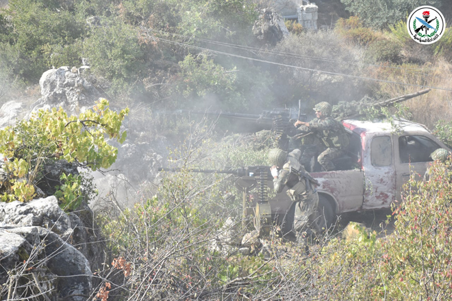 ثم اندفعت مفارز الاقتحام ومجموعات الالتفاف عبر الوديان بالاستفادة من الغطاء النباتي والأشجار والغابات وباستخدام مختلف وسائل التمويه، مهاجمة المواقع المعادية بمختلف الوسائط النارية وبتغطية نارية جوية ورمايات كثيفة على العدو في العمق لمنعه من دعم نقاطه الأمامية.