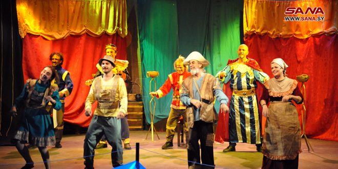وتدور قصة العرض الذي انطلق على خشبة مسرح القباني اليوم حول ملك يفقد تاجه الذهبي في إحدى رحلات الصيد ليسقط التاج في النهر، ويقوم الملك بمنع الصيادين من الاقتراب ليعثر على التاج أبناء أحد الصيادين الفقراء فيأتيهم تاجر مستغل ويتفق معهم ويحتال عليهم لأخذ تاج الملك وشرائه من هذه العائلة الفقيرة التي تبحث عن لقمة عيشها عبر ممارسة مهنة الصيد.