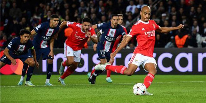 تعادل باريس سان جيرمان مع ضيفه بنفيكا بهدف لكل منهما ضمن منافسات الجولة الرابعة من مجموعات دوري أبطال أوروبا وسجل الفريقان هدفي المباراة من ركلتي جزاء إذ تقدم كيليان مبابي لباريس في الدقيقة 40 وأدرك جواو ماريو التعادل لبنفيكا في الدقيقة 62.