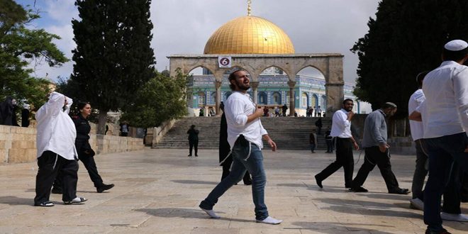 ونقلت وسائل إعلام فلسطينية عن دائرة الأوقاف الإسلامية قولها: “إن 776 مستوطناً اقتحموا الأقصى من جهة باب المغاربة، ونفذوا جولات استفزازية في باحاته بحماية قوات الاحتلال التي اعتقلت اثنين من حراس المسجد”.