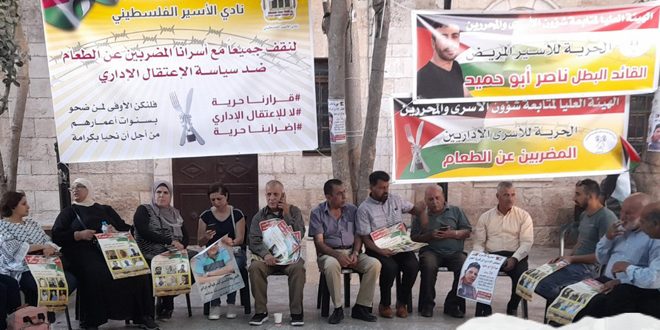 وذكرت وكالة وفا أن المشاركين في الوقفة التي دعت لها القوى الوطنية الفلسطينية في ساحة المركز الثقافي بالمدينة رفعوا العلم الفلسطيني وصور الأسرى الـ 50 المضربين عن الطعام والأسير المصاب بالسرطان ناصر أبو حميد ولافتات تطالب الاحتلال بالإفراج عنهم ووقف انتهاكاته بحق جميع الأسرى، وفي مقدمتها الإهمال الطبي المتعمد.