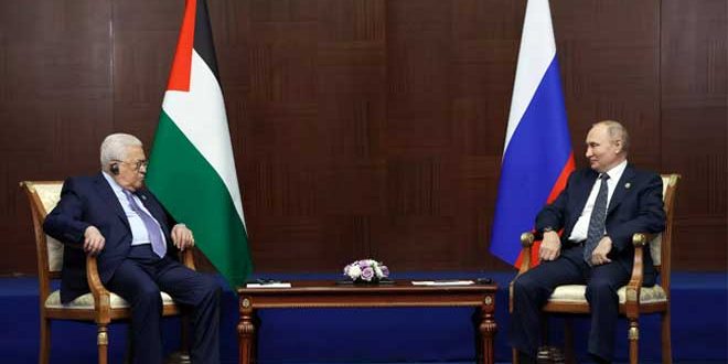 ونقلت وكالة سبوتنيك عن بوتين قوله خلال لقائه عباس اليوم على هامش مؤتمر “التفاعل وإجراءات بناء الثقة في آسيا” المنعقد في أستانا “هناك الكثير مما يتعين القيام به لضمان تطوير العلاقات الاقتصادية الثنائية بشكل أكثر فاعلية، وخاصة أن هناك إمكانية لذلك”.