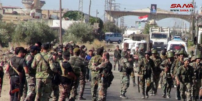 واصلت الجهات المختصة بالتعاون مع مجموعات أهلية وبمساندة الجيش العربي السوري عملياتها الأمنية في مدينة جاسم على امتداد 55 كم شمال غرب محافظة درعا ضد عناصر تنظيم “داعش” الإرهابي لليوم الثاني على التوالي.