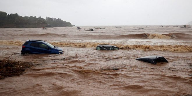 بدورها أظهرت صور سيارات عائمة أو غارقة جزئياً، مع قوارب صيد صغيرة في مياه البحر الموحلة قبالة أجيا بيلاجيا، بينما قال مسؤول في فرقة الإطفاء: إن الفرقة تلقت مئات البلاغات لإنقاذ الناس، أو سحب المياه من المباني التي غمرتها المياه في الجزيرة.