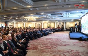 وأوضح رئيس مجلس الوزراء أنه رغم معاناة بلدنا ما يزيد على عقدٍ من الزمن من الحرب الإرهابية التي استهدفت مقومات الاقتصاد الوطني وبناه التحتية ومقومات نموه وتطوره، ورغم كل الضرر الذي لحق بالقواعد الاقتصادية والموارد الأساسية، ورغم الإجراءات الاقتصادية القسرية الجائرة بقي اقتصادنا صامداً وقادراً على استيعاب الصدمات والتعامل معها والاستجابة للمتغيرات الطارئة بمرونة، وذلك بفضل الجهود المشتركة من الفريق الحكومي وقطاع الأعمال الوطني المنتج والمؤمن بمستقبل سورية البلد العظيم بأبنائه وبمقدراته.