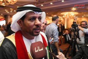 بدوره دعا رئيس مجلس الفكر الثقافي العماني ورجل الأعمال محمد علي بخيت النهاري المستثمرين العرب إلى زيارة سورية، والاطلاع على مقومات السياحة السورية للاستثمار بهذا المجال، ولا سيما بعد عودة الامن والأمان إليها، معتبراً أن دمشق هي وجهة العرب في كل المجالات.