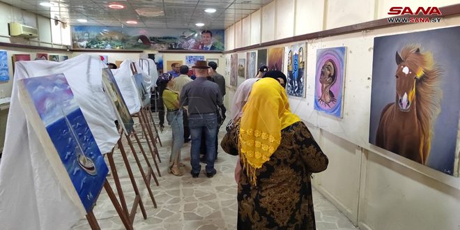 المعرض الفني ضم نتاج ورشة الرسم الجماعي، التي أقيمت ضمن أيام الفن التشكيلي السوري، وتضمنت عدداً من اللوحات الفنية التي تنوعت مواضيعها ما بين البورتريه والتراث والطبيعة والمشاهد الحياتية والمزج الفني باللغة العربية، وغيرها من المواضيع الأخرى.