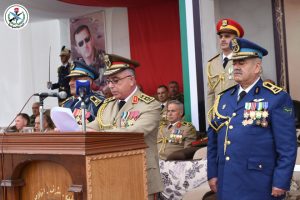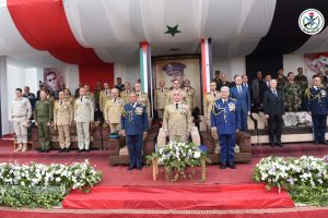وألقى العماد إبراهيم ممثل القائد العام كلمـة نقل فيها تهاني الرئيس الأسد وتمنياته للمتخرجين بالتوفيق والنجاح في جميع مناحي حياتهم المقبلة ولاسيما المهام الوطنية المقدسة التي تنتظرهم إلى جانب رفاق السلاح.