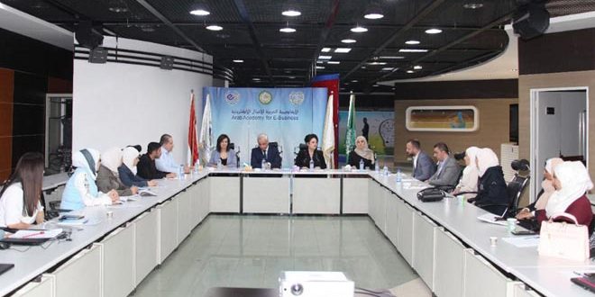 بدورها بينت رئيسة الأكاديمية العربية للأعمال الإلكترونية الدكتورة منى حسون أن الأكاديمية هي منظمة عمل عربي مشترك، تابعة لمجلس الوحدة الاقتصادية العربية، وتساهم عبر أنشطتها في التعليم والتدريب المهني والاستشارات لتنمية المهارات الرقمية والإدارية، وتأهيل اختصاصيين فيها، معربة عن أملها بالمزيد من التعاون مع وزارة الاتصالات والتقانة، لدعم التحول الرقمي في سورية.