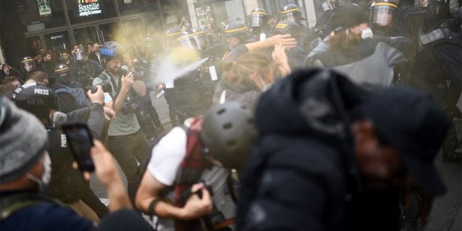 استخدمت الشرطة الفرنسية الغاز المسيل للدموع ، ضد مظاهرة حاشدة خرجت في باريس للتنديد بسياسات الرئيس الفرنسي إيمانويل ماكرون الاقتصادية والمالية.