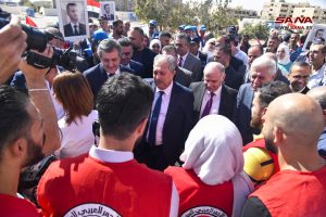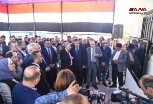 شارك رئيس مجلس الوزراء المهندس حسين عرنوس العمال والفنيين، في وضع مشروع إعادة تأهيل محطة ضخ مياه جوبر بالخدمة بتكلفة تزيد على 8 مليارات ليرة سورية، بعد أن كانت تعرضت للتخريب جراء الاعتداءات الإرهابية عليها.