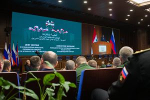 من جهته أوضح رئيس الهيئة التنسيقية الوزارية الروسية رئيس مركز إدارة الدفاع الوطني العقيد أوليغ غورشينين في كلمة عبر الفيديو أن بلاده ستواصل تقديم المساعدة الإنسانية إلى سورية لإعادة الإعمار وتجاوز الأزمة الحالية وضمان تطوير العلاقات التجارية والاقتصادية بين البلدين مشيراً إلى أنه تم التركيز مؤخراً على التعاون في مشاريع البنى التحتية ومجالات الثقافة والتعليم وترميم مواقع التراث العالمي في سورية.