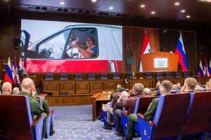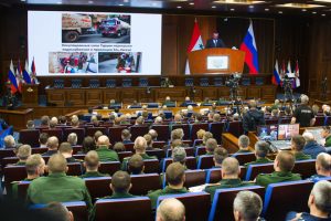بدوره أكد نائب وزير الدفاع الروسي العماد أول ميخائيل ميزينتسيف في كلمة عبر الفيديو أنه بعد هزيمة الإرهاب في سورية بدعم من روسيا كانت المهام ذات الأولوية المشتركة هي إعادة الإعمار وتقديم المساعدة للاجئين والمهجرين للعودة إلى منازلهم وتحسين الخدمات والبنية التحتية ما أدى إلى عودة أعداد كبيرة من السوريين من الخارج ومن النازحين داخلياً إلى منازلهم لافتاً إلى أن العقوبات الغربية غير الشرعية المفروضة على سورية هي السبب في معاناة مواطنيها وعرقلة عودة المهجرين واللاجئين.