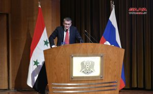 مبعوث مجلس الدوما في الجمعية الاتحادية لروسيا فلاديمير غوتينيف أكد أن دعم روسيا لسورية في مكافحة الإرهاب ساعد في استقرار الوضع وتعزيز التعاون في المجالات الدفاعية والعسكرية التقنية موضحاً أن البلدين يقفان معاً في مواجهة الخطط الأمريكية للهيمنة على العالم على الرغم من الضغوطات.