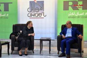 ولفتت لارينا إلى أن قناة روسيا اليوم بالعربية مشهورة بين المواطنين السوريين، مؤكدة أن هذا المشروع الروسي يفي بالمعايير العالية، وخاصة أنه يساعد في نقل الحدث الحقيقي في العالم.