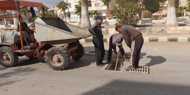 ضمن إطار استعداداتها لفصل الشتاء أجرت ورشات مجلس مدينة درعا صيانة للمطريات، وأقنية تصريف المياه.