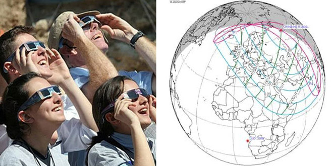وتشهد الأرض غداً كسوفاً جزئياً للشمس سيكون مرئياً في أجزاء من أوروبا وغرب آسيا وشمال شرق أفريقيا، وتغيب المشاهدة في أجزاء أخرى من العالم.