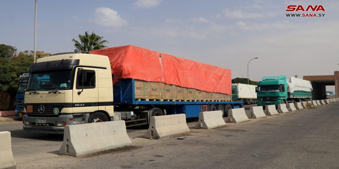 وأشار الخصاونة في تصريح لمراسلة سانا إلى أن البضائع التي دخلت من البوابتين السورية والأردنية شملت، الأعلاف والسيارات السياحية الصغيرة والمواد الغذائية، من زيوت وسكر وقطع غيار السيارات وتجهيزات الطاقة الشمسية من ألواح وبطاريات ومختلف أنواع الحجر والرخام.