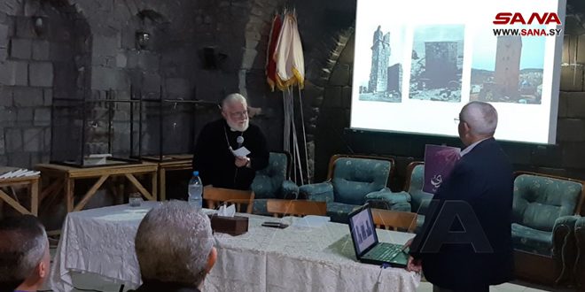 واستهل العرض الأب الدكتور ميشيل نعمان من مطرانية السريان الكاثوليك بشرح حول تاريخ الاكتشافات الأثرية للمدن المنسية منتصف القرن التاسع عشر، وخصائص هذه المدن والقرى وبنائها وفق أسلوب معماري واحد يسمى (فن العمارة السورية)، تمييزاً لها عن العمارة الكلاسيكية اليونانية والرومانية.