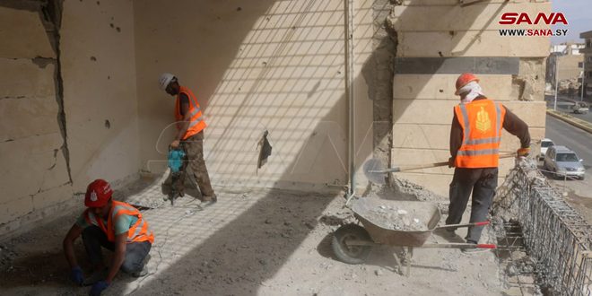 بدوره أوضح مدير المشروع المهندس أسامة المحمد أن أعمال التأهيل تضمن تدعيماً لكامل كتلة البناء وتنفيذ الأعمال الإنشائية والمعدنية، إضافة إلى إكساء الطابق الأرضي كمرحلة أولى بشكل كامل، على أن يتم في المرحلة الثانية استكمال إكساء كامل المبنى.