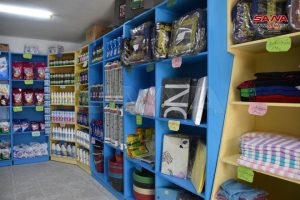 وتمتد الصالة على مساحة تقارب 80 متراً مربعاً، وتوفر السلع المتنوعة للمواطنين من المواد الغذائية والمنظفات والأدوات المنزلية والألبسة، بأسعار مخفضة عن السوق بنسبة تصل إلى 25 بالمئة.