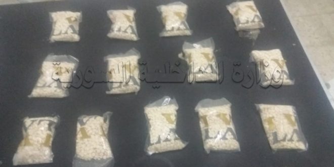 وذكرت وزارة الداخلية في بيان تلقت سانا نسخة منه أنه وبناءً على المعلومات الواردة إلى فرع مكافحة المخدرات في حمص حول وجود شخص يقوم بتجارة وترويج حبوب الكبتاغون المخدرة ومن خلال المتابعة والمراقبة تم إلقاء القبض عليه بكمين محكم على طريق عام حمص و طرطوس وتبين أنه من أرباب السوابق بتجارة المخدرات.