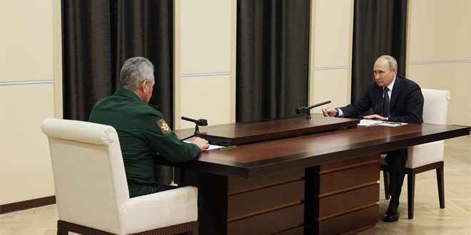 بدوره أبلغ شويغو بوتين بانتهاء عملية التعبئة الجزئية لـ300 ألف شخص، مشيراً إلى أنه يتم إيلاء اهتمام خاص لإعداد وتدريب أولئك الذين تم تعبئتهم، قبل إرسالهم إلى مناطق العملية العسكرية الخاصة في أوكرانيا.