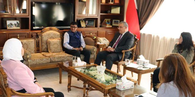 بحث وزير الزراعة المهندس محمد حسان قطنا مع الممثل المقيم لبرنامج الأمم المتحدة الإنمائي سوديبتو موكرجي سبل التعاون في المجال الزراعي والتنمية الريفية.