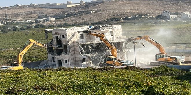 وذكرت وكالة وفا أن قوات الاحتلال اقتحمت المنطقة بعدد من الجرافات، وهدمت منزلاً.