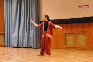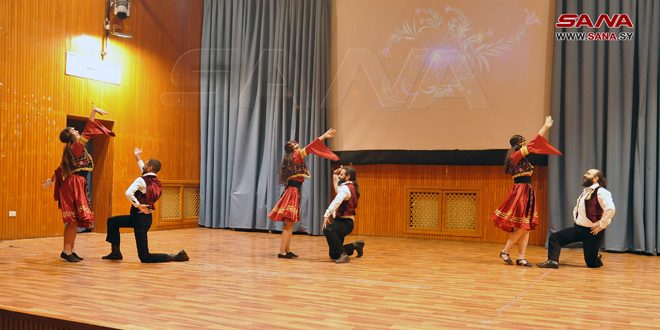 وقدمت الفرقة بإشراف المدرب محمد طرابلسي عددا من اللوحات التعبيرية والفلكلورية الراقصة تغنت بالتراث والفلكلور السوري والفلسطيني، إضافة إلى لوحة الورد، وأغان قديمة سلطت الضوء على جماله، وأهميته لتنهي لوحاتها برقصة المولوية.