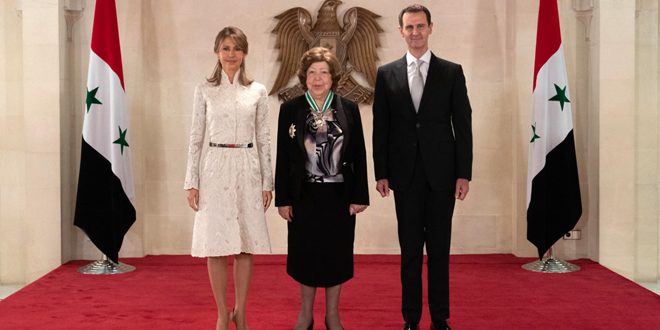 الرئيس الأسد يمنح الدكتورة نجاح العطار وسام أُميّة الوطني ذا الرصيعة – فيديو