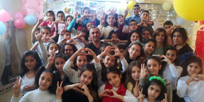 بهدف دعم العملية التربوية التعليمية وإثراء محتوى مادة اللغة الإنكليزية وسهولة إيصال المعلومات إلى التلاميذ، نفذت المعلمة الشابة نسرين إسماعيل حمدان مبادرة، تتضمن معرضاً للوسائل التعليمية الخاصة بتدريس منهاج (إيمار الجديد) لمرحلة التعليم الأساسي في مدرسة الشهيد محمد عبد الله حلقة أولى بمساكن الحرس في ريف دمشق.