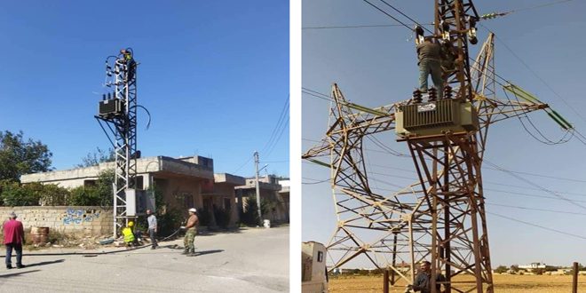 وأضاف: إن ورشات الشركة وفي اطار العمل لتخفيف الانقطاعات المفاجئة ومعالجة الاختناقات الحاصلة على الشبكة قامت برفع استطاعة عدة محولات إلى (360 ك. ف.ا) و(400 ك. ف.ا) في أحياء العباسية وعكرمة الجنوبية وكرم الزيتون وقرى الغسانية ورباح، مبيناً إن الشركة باشرت بإجراء صيانة كاملة لمركز تحويل العاصي في وادي الذهب ولمركز تحويل المتنبي في باب السباع ونقلت 6 محولات لتجمع الجديدة لإجراء الصيانة اللازمة لها إضافة إلى تركيب 4 محولات بدل معطوبة باستطاعات مختلفة في قرى الذهبية وآبل والرزوقية وفي بناء الأوقاف طريق الشام، وقامت بتركيب أكثر من 25 قاطع توتر منخفض ومتوسط.