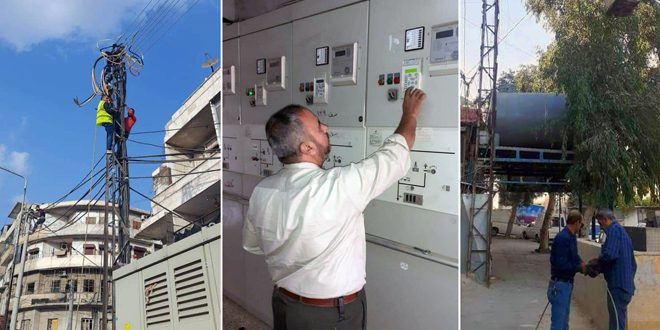 وأشار الحاج عمر إلى أن العمل مستمر لإيصال التيار الكهربائي وتغذية الأحياء الشعبية بالطاقة الكهربائية، ومنها أحياء المرجة والصالحين وبستان الباشا والأنصاري، بالتوازي مع التوسع بمد خطوط الشبكة إلى بلدات ومدن الريف، ومنها سمعان ودير حافر والسفيرة وتأهيل مراكز التحويل فيها.