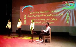 المهرجان الذي تنظمه اللجنة المناطقية للحزب الشيوعي السوري بالمحافظة، واتحاد الشبيبة الشيوعية، بمناسبة ذكرى تأسيس الحزب الشيوعي تحت عنوان (سورية لن تركع)، تضمن حفل افتتاحه فيلماً وثائقياً قصيراً عن مسيرة الحزب الوطنية، وفقرة شعرية للشاعر نزار شجاع بعنوان “صوت الشعب”، إضافة إلى فقرة فنية لفرقة المجد للصمود، تضمنت باقة من الأغاني الوطنية والاجتماعية.