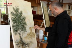 وأطل الفنان التشكيلي محمد طريفي من عنازة بانياس بأربع لوحات من مختلف الأحجام واستخدم تقنيات جديدة منها أوراق الزيتون ليهب اللوحة صورة واقعية، موضحاً أن إحدى لوحاته تناولت موضوع برج صافيتا وأشجار الزيتون لأن لهما جذوراً ثابتة ومترسخة في الأرض.