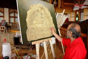 الفنان التشكيلي جورج شمعون من مدينة رأس العين بالحسكة ذكر أنه تمكن من خلال لوحتين من تحويل النص الأدبي إلى بصري من خلال استخدام مقولات لجبران خليل جبران، إلى جانب وضع البورتريه لشخصية جبران، ويحيط بها نوع من النقش التدمري بهدف إعطاء الطابع السوري مستخدماً ألواناً زيتية على القماش.