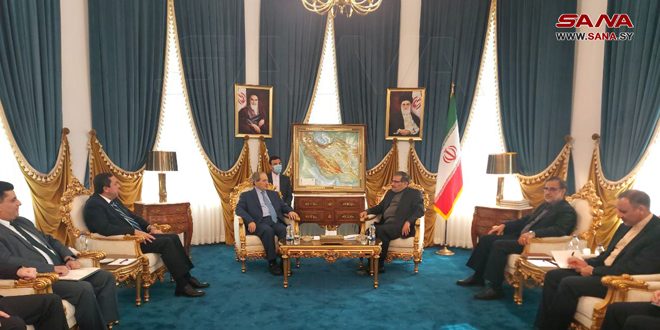 بحث وزير الخارجية والمغتربين الدكتور فيصل المقداد اليوم في طهران مع أمين المجلس الأعلى للأمن القومي الإيراني الأدميرال علي شمخاني العلاقات الثنائية، وآخر المستجدات والتطورات على الساحة الإقليمية والدولية.