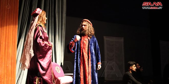 قدمت فرقة معاهد حلب ضمن فعاليات مهرجان المسرح الجامعي عرضاً مسرحياً بعنوان “تغريبة العوسج” تأليف أحمد العطار وإخراج أحمد مكاراتي وذلك على مسرح قصر الثقافة بحمص مساء اليوم.