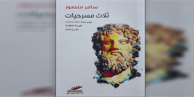 يقدم الأديب سامر منصور ثلاثة نصوص مسرحية في كتابه الصادر عن اتحاد الكتاب العرب، حملت عناوين زيوس بيننا واللوحة الناقصة والفرح السام، التي جاءت متنوعة بأفكارها ومواضيعها وشخوصها.