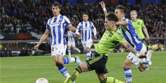 فاز فريق مانشستر يونايتد الإنكليزي على ريال سوسيداد الإسباني بهدف دون مقابل في المباراة التي جمعتهما اليوم على ملعب أنويتا في الجولة السادسة من منافسات الدوري الأوروبي لكرة القدم.